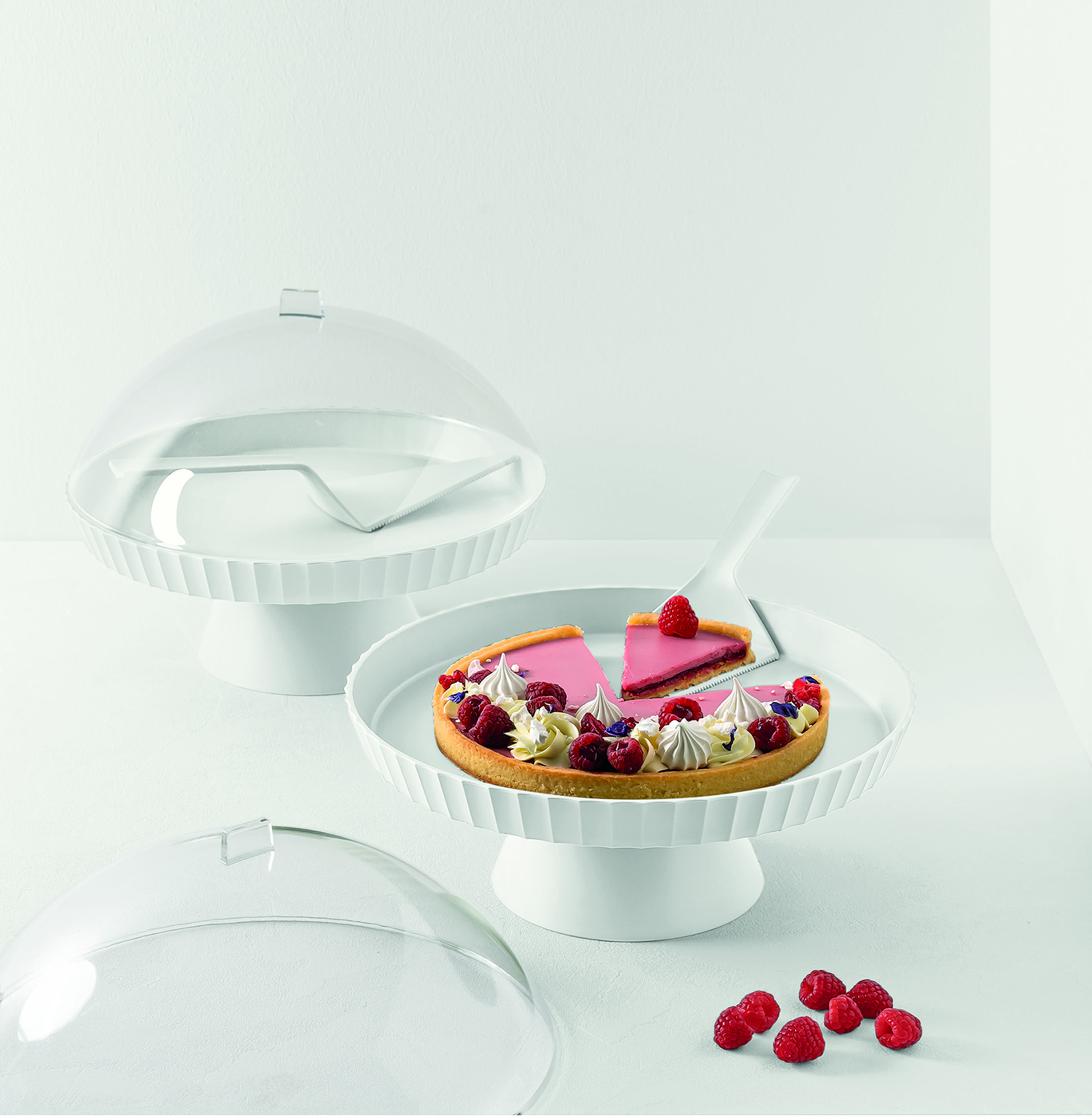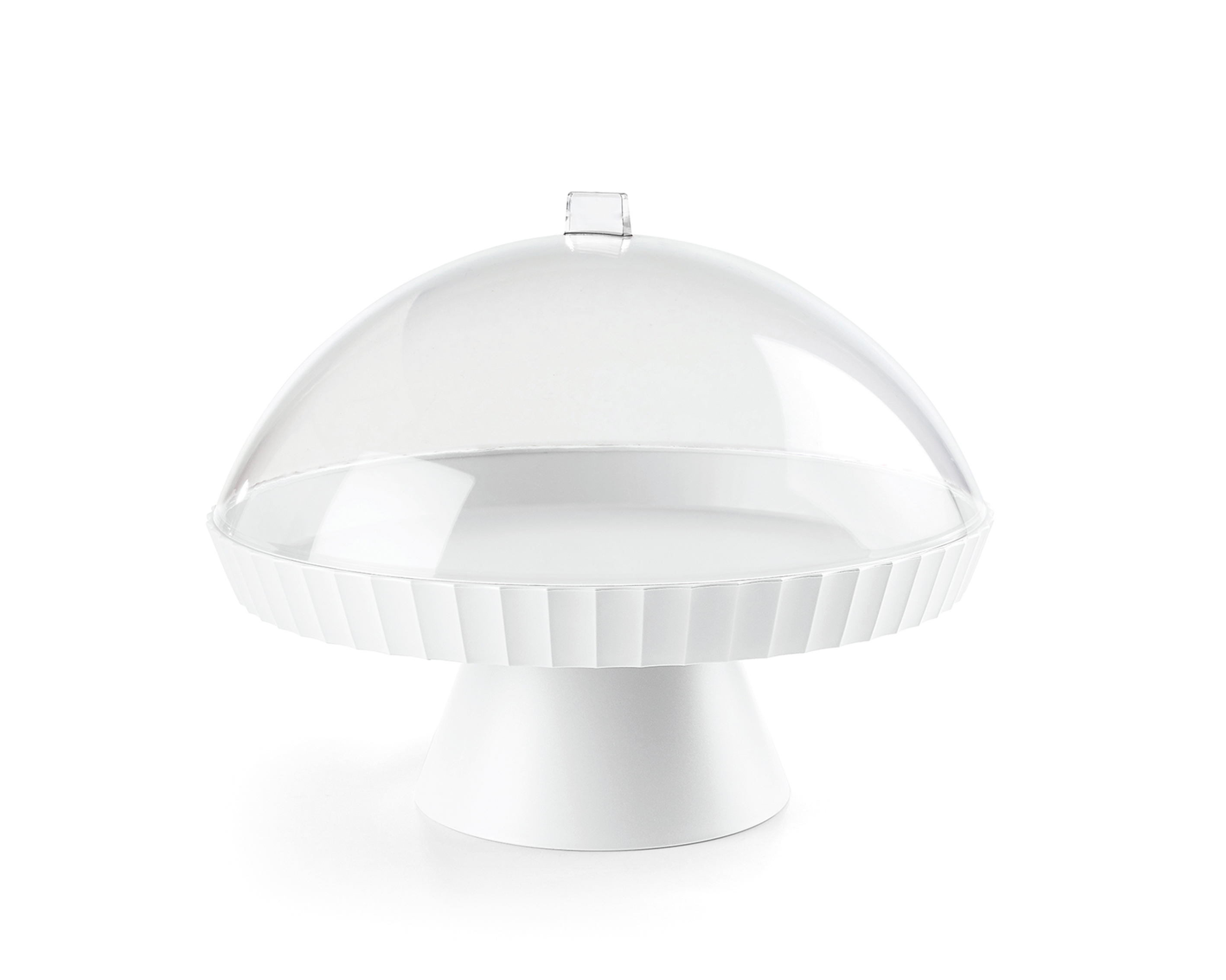Stilosa, scenografica e dall’allure un po' british: Agorà è un’alzatina in polipropilene con piatto rialzato da un piedino e cupola in polimetilmetacrilato. Nella nuova veste cromatica “Cloud Dancer”, il colore Pantone 2026, Agorà si trasforma in un oggetto di design che esalta la purezza e la leggerezza del bianco etereo. Questa tonalità, scelta per evocare nuovi inizi e armonia, amplifica l’effetto wow nella presentazione di dolci, biscotti, formaggi, frutta e aperitivi, rendendo ogni mise en place un gesto di eleganza contemporanea.