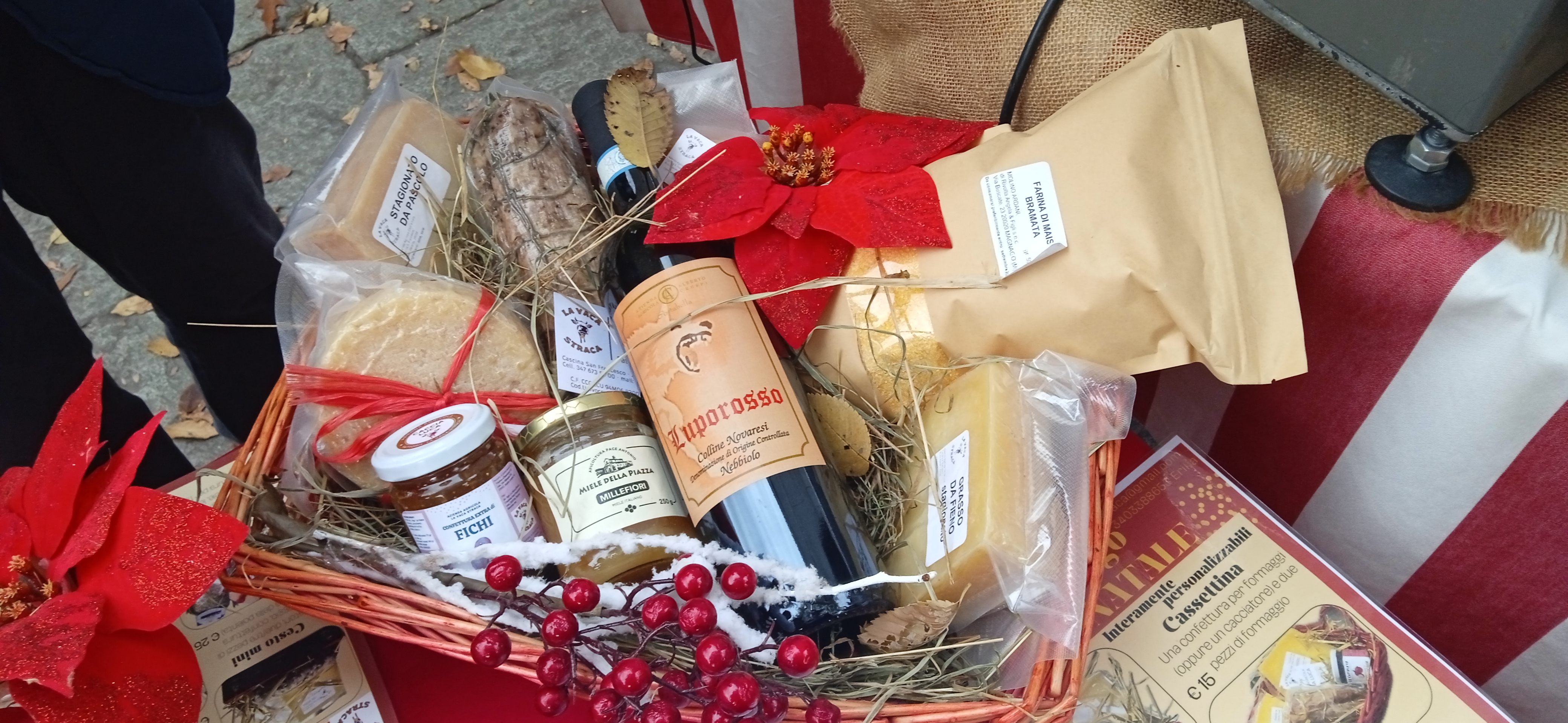 Qualche idea? l’Apecar di Antonio propone il miele al tarassaco pluripremiato con le Tre Gocce e le molteplici declinazioni dell’oro giallo (tiglio, castagna, rododendro, ligustro, ailanto, erica solo per citarne alcuni) e i propoli, il preparato Buon Respiro , i prodotti di bellezza a base di miele; il vino dell’Oltrepo della cantina Sparano Capelli con le sue bolle ancestrali o il Montecalò da vigne centenarie; le farine, i biscotti, i grissini, e non solo dell’agricola Cucca; i formaggi di mucca e di capra de La Vaca Straca, di Greenfantasy (Sant’Eustorgio) e di Vailati (Ansperto) che propongono anche cesti natalizi già pronti.