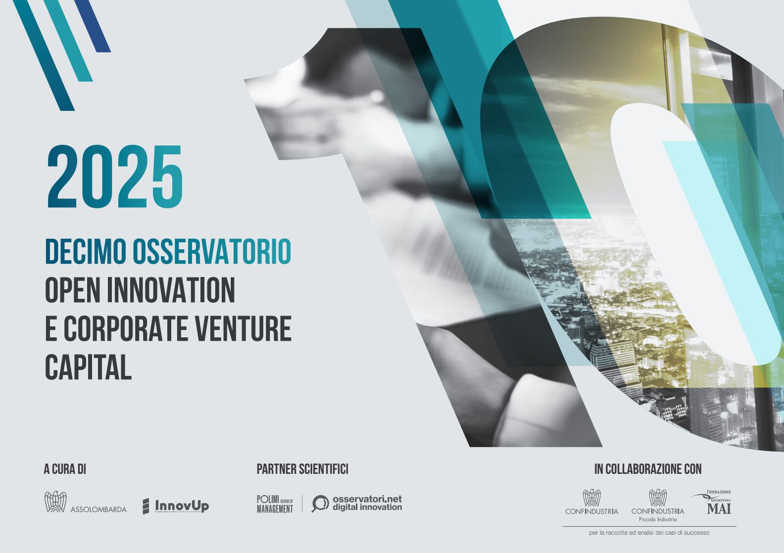 Il decimo Osservatorio sull’Open Innovation e il Corporate Venture Capital Italiano, realizzato da InnovUp e Assolombarda con la partnership scientifica degli Osservatori Digital Innovation del Politecnico di Milano e con il supporto dell’Area Politiche per il Digitale e Filiere, Scienza della Vita e Ricerca di Confindustria, con Fondazione MAI e Piccola Industria Confindustria, ha l’obiettivo di aumentare la consapevolezza su un tema – la contaminazione tra industrie mature e giovani imprese innovative ad alto potenziale di crescita – in grado di introdurre innovazione e talenti nelle imprese consolidate e di aprire nuovi mercati, creando opportunità di crescita, per le imprese emergenti.