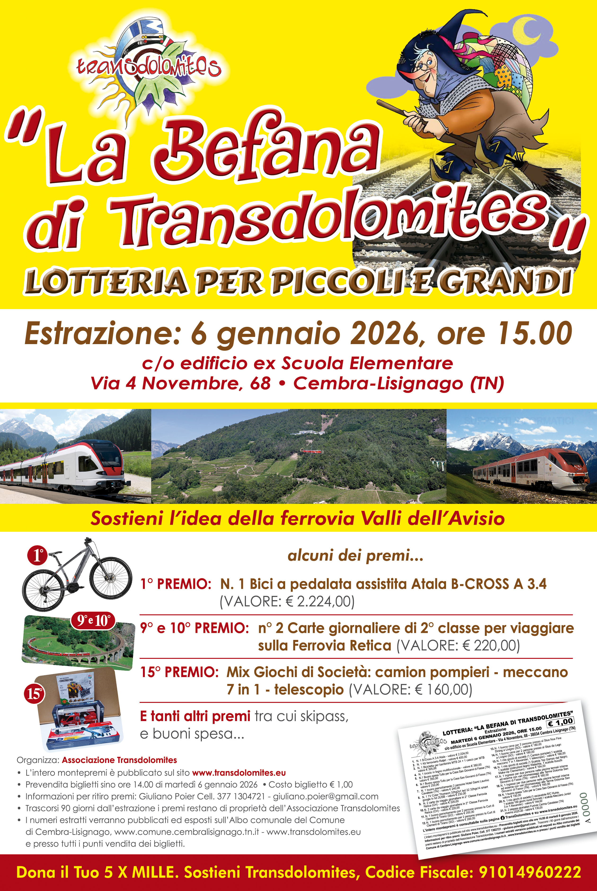 Anche quest’anno Transdolomites promuove la Lotteria di autofinanziamento denominata “ La Befana di Transdolomites 2026”