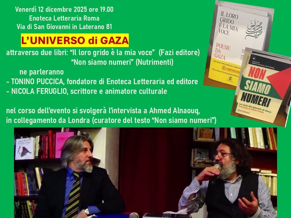 Venerdì 12 dicembre 2025 ore 19.00 Enoteca Letteraria Roma - Via di San Giovanni in Laterano 81