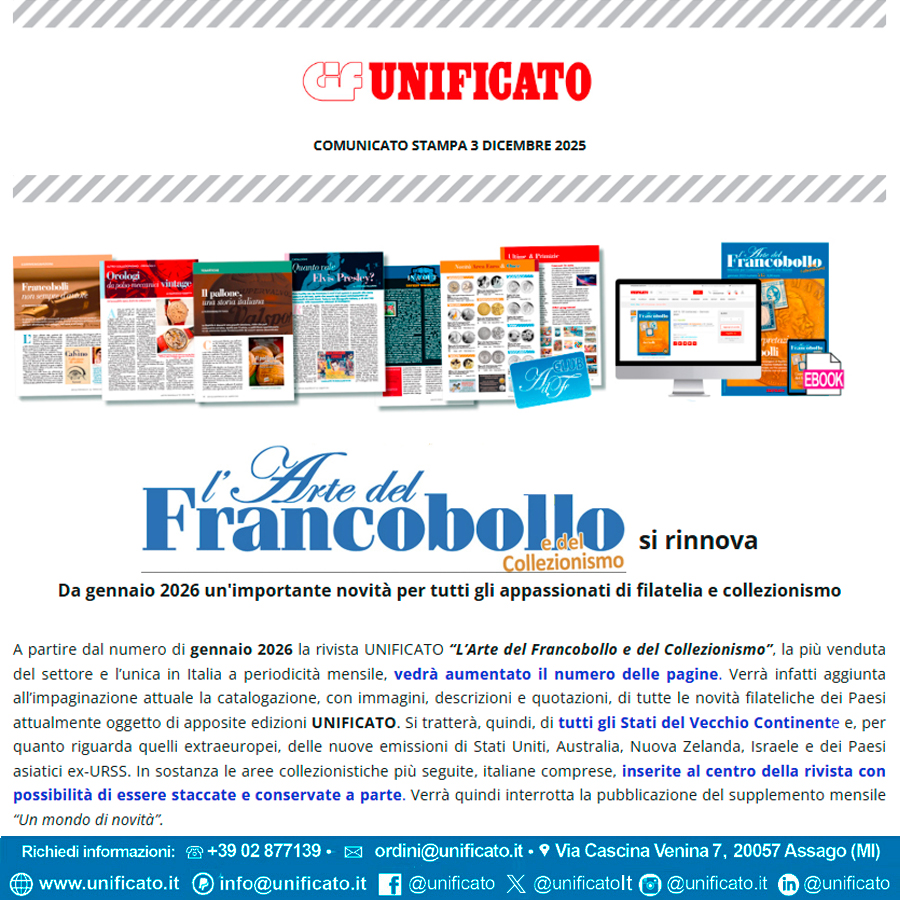 L’Arte del Francobollo edita da UNIFICATO si rinnova