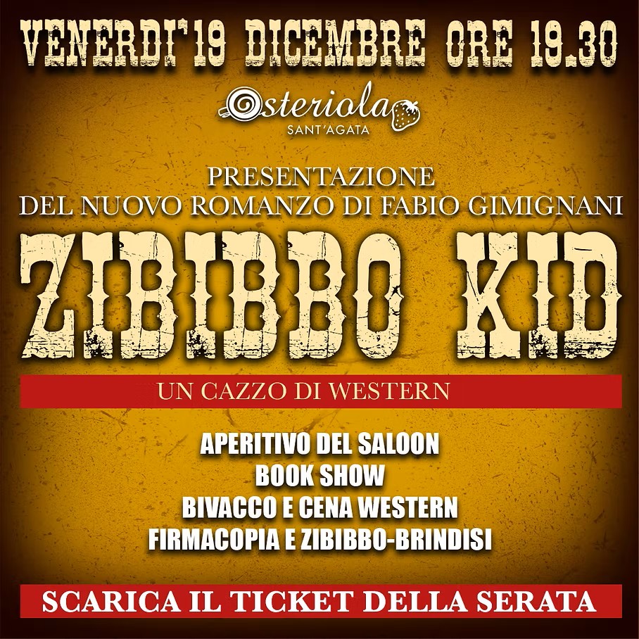 Fabio Gimignani è uno scrittore, autore e narratore dall’inconfondibile voce ironica e visionaria. Toscano di origine e romano d’adozione, si è avvicinato alla scrittura passando attraverso il teatro, il cinema e la narrativa breve, sviluppando un linguaggio narrativo che unisce ritmo, comicità e immaginazione. Nel corso degli anni Gimignani ha sperimentato forme e registri diversi: racconti grotteschi, monologhi teatrali, testi per performance e sceneggiature, affinando una poetica in cui convivono sguardo lucido, immaginario pop, amore per i generi e una forte capacità di costruire personaggi memorabili. Zibibbo Kid rappresenta il suo esordio nel romanzo western, genere che rilegge con uno stile originalissimo, fondendo suggestioni americane, ironia italiana e un’inaspettata delicatezza emotiva. Da sempre affascinato dai “margini” – geografici, sociali e psicologici – Gimignani porta nelle sue pagine l’umanità buffa, fragile e irresistibile dei suoi protagonisti, costruendo storie che divertono e commuovono al tempo stesso.